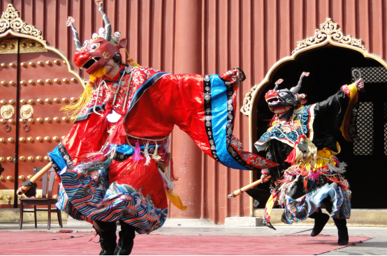 內(nèi)蒙地區(qū)的查瑪樂舞已與藏族地區(qū)的“羌姆”明顯不同。隨著藏傳佛教傳入蒙古地區(qū)后,積極的吸收和融合了蒙古族傳統(tǒng)音樂舞蹈和薩滿教神舞的因素后形成了蒙古化的查瑪樂舞。因此,內(nèi)蒙地區(qū)的查瑪內(nèi)具有復(fù)合型和多元性特點(diǎn)。2008年,查瑪樂舞被列入國(guó)家級(jí)非物質(zhì)文化遺產(chǎn)。