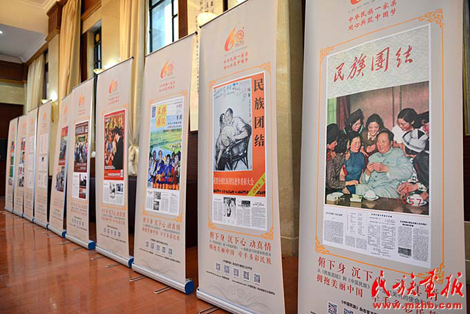 2017年,在“砥礪奮進(jìn)的五年”大型成就展上展出的《民族畫報(bào)》六種文版期刊以及《民族畫報(bào)》記者拍攝的反映民族工作成就的圖片