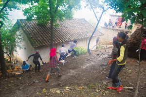 彝族人認(rèn)為,清水能驅(qū)惡除邪,送走妖魔,帶來幸福,因此接親、送親都要潑水。接親這一天,新娘的姐妹組織鄰近的婦女早做好了準(zhǔn)備,躲藏在房前屋后或墻里墻外,只等接親隊(duì)伍到來。當(dāng)接親隊(duì)伍東瞧瞧,西望望,小心謹(jǐn)慎地走進(jìn)女方家門時(shí),一瓢瓢、一盆盆清水就會(huì)劈頭蓋臉地潑來。用水方便的地方,人們還直接接上水管射,令接親者防不勝防,一個(gè)個(gè)被淋成了“落湯雞”。他們有時(shí)也會(huì)趁人不備,搶過女方手中的水桶或水盆反擊。在一片歡鬧聲中,姑娘們不斷展開攻勢(shì),越“戰(zhàn)”越猛,而接親的小伙子們則難以招架。