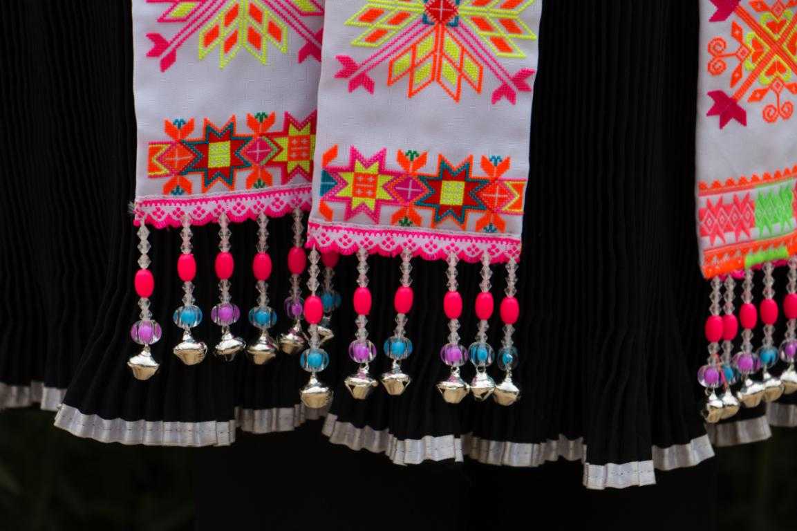 苗族婦女自古以來(lái)給人的第一印象都是勤勞樸實(shí),心靈手巧。五星村的苗族婦女們也很好的傳承了祖輩們的優(yōu)良品質(zhì),除了能持家,她們還擅長(zhǎng)刺繡。農(nóng)閑時(shí)三兩婦女約坐一起,拿出自己的針線,開(kāi)始了她們的創(chuàng)作,苗族女性刺繡從不需要模板,所有圖案樣式皆構(gòu)