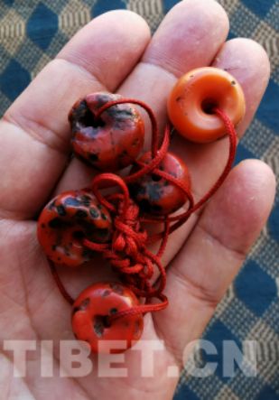 珊瑚在藏語中稱為“曲如”,在邊貿(mào)市場中的數(shù)量甚至多于綠松石,而且以真貨為主。其中原因,可能也主要在于制作普蘭當?shù)胤椥枰?,以及人們喜歡將其作為戴在脖子上的項鏈飾品的緣故。