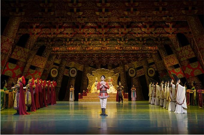 “大家可以看到,在這部舞劇中既有非常濃郁的盛唐風(fēng)格,也有非常鮮明的西域文化特點(diǎn)。”舞劇《傳絲公主》總導(dǎo)演左青表示。舞臺(tái)上的每一幕都有情景定位、情節(jié)助推、情感渲染、情調(diào)濡潤(rùn),兼具依托文本結(jié)構(gòu)的真情訴說和舞蹈本體的詩(shī)意表達(dá),構(gòu)建起舞劇的整體形式感。