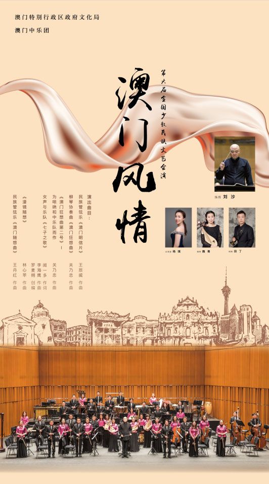 由澳門特別行政區(qū)政府文化局轄下澳門中樂團精心構(gòu)思、傾情演繹的《澳門風情》音樂會,于9月11日亮相第六屆全國少數(shù)民族文藝會演,在央視網(wǎng)及國家民委門戶網(wǎng)站進行網(wǎng)絡展播。
