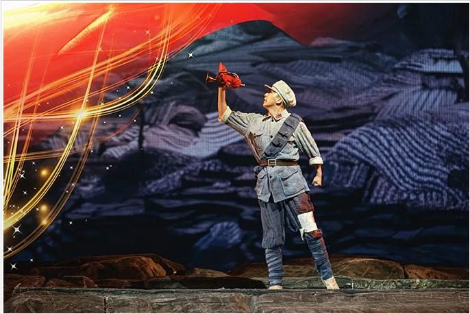 《花兒與號手》是一部以紅軍長征路過六盤山為背景創(chuàng)作的音樂劇,全劇展現(xiàn)了長征路上紅軍戰(zhàn)士的理想信念和“長征是宣言書、是宣傳隊、是播種機”這一核心思想,弘揚了中國共產黨百年征程中展現(xiàn)出的無私無畏的革命精神。