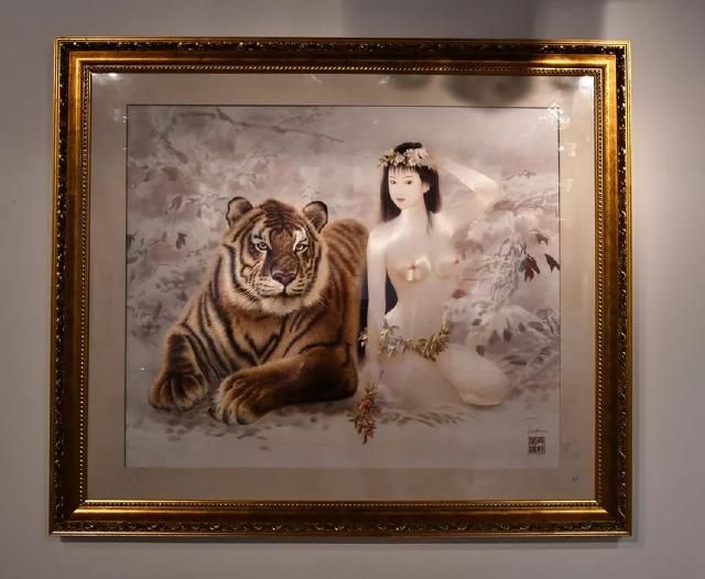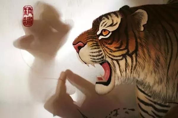本幅繡品首次成功地將人物肖像圖方式引入傳統(tǒng)走獸刺繡之中。作者用細(xì)膩的針?lè)?xì)致精準(zhǔn)地繡出了老虎根根可辨的絨毛和少女光滑細(xì)膩的皮膚,形成極大的反差,極具視覺(jué)沖擊力。