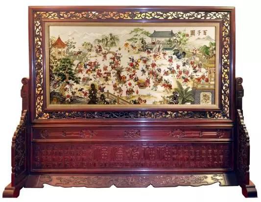 作品構(gòu)圖飽滿,氣氛鮮明,展現(xiàn)出一百位童子各異的形態(tài)、生動(dòng)傳神。體現(xiàn)了傳統(tǒng)潮繡極高的工藝技法和藝術(shù)水平。