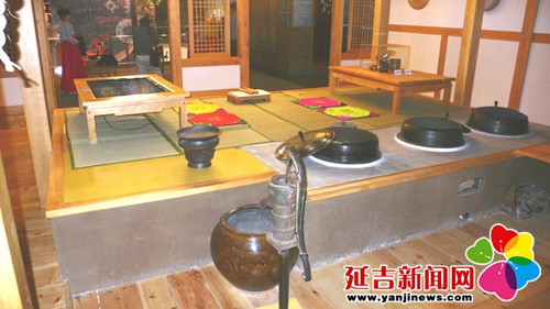 無論什么類型的朝鮮族傳統(tǒng)民居,只要走進(jìn)房屋,第一個感覺就是有很大的一個炕。炕是朝鮮族人在室內(nèi)的主要活動空間,你看有的炕上親友們在圍桌對飲,有的炕上婦女們在做活計,還有的炕上孩子們在玩耍。炕大,散熱面積就大,屋里到了冬天就會顯得特別暖和。在延邊地區(qū)朝鮮族房屋內(nèi)的灶坑更是別具一格,它下陷在地下,底部低于地面,上部還有蓋板,而蓋板和鍋臺、炕面形成了一個平面。據(jù)說,這種灶坑是既好燒、又衛(wèi)生。