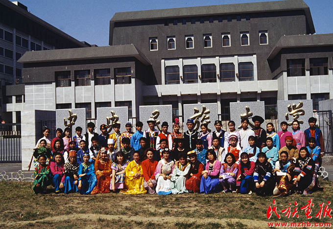 1991年,我國56個(gè)民族都有了自己的大學(xué)生,圖為1994年中央民族大學(xué)的各民族學(xué)生(中國民族圖片庫資料)