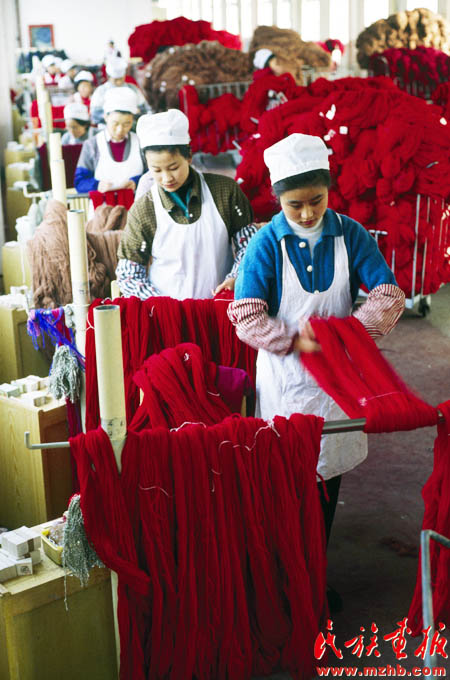 20世紀(jì)90年代初期,一些經(jīng)濟(jì)學(xué)家把戰(zhàn)略眼光投向資源豐厚的西部地區(qū),以促進(jìn)中西部省區(qū)經(jīng)濟(jì)協(xié)作為目的的隴海蘭新經(jīng)濟(jì)帶悄然成型,并輻射至西亞和歐洲。圖為跨入全國800家最大工業(yè)企業(yè)行列的甘肅省天水市甘肅絨線廠?!睹褡瀹媹?bào)》1994年第4期