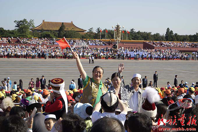 新中國成立以來,黨和國家始終堅(jiān)持把馬克思主義民族理論同中國民族問題具體實(shí)際相結(jié)合,始終堅(jiān)持把民族工作作為一項(xiàng)重大工作來抓,團(tuán)結(jié)帶領(lǐng)全國各族人民共同團(tuán)結(jié)奮斗,共同繁榮發(fā)展,開創(chuàng)了中國特色解決民族問題的正確道路,取得了舉世矚目的成就,積累了彌足珍貴的成功經(jīng)驗(yàn)。2009年10月1日,在北京天安門廣場,20萬軍民以盛大的閱兵儀式和群眾游行歡慶新中國60華誕,圖為各民族學(xué)生參加“團(tuán)結(jié)奮進(jìn)”方陣群眾游行。《民族畫報(bào)》2009年第10期