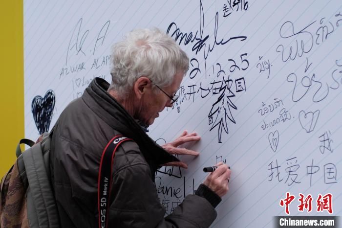 一名外國(guó)友人參觀畫(huà)展,并簽名?!⒖÷?攝