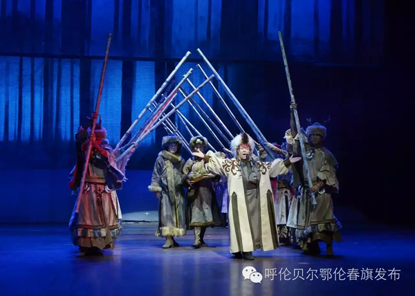 《勇敢的鄂倫春》,由烏蘭托嘎?lián)嗡囆g總監(jiān),塞納為編劇,三虎、丹德爾(俄羅斯)、吳莽三人出任總導演;全體演職人員63人,由鄂倫春自治旗烏蘭牧騎專業(yè)人員和15名群眾演員組成,其中鄂倫春族藝術家曲云、白娟為國家一級演員,鄂倫春族群眾演員來自獵民村與相關城鎮(zhèn),演員隊伍中年齡最大的71歲,最小的7歲。演出團隊中鄂倫春族演員占到了接近一半?!队赂业亩鮽惔骸芬远鮽惔好褡濯氂械尼鳙C文化為主線,詩意地講述了狩獵生活的全過程,生動鮮活地展示了鄂倫春民族勇敢、細膩的民族精神和性格特征。該劇還采用了高于原生態(tài)表現(xiàn)手段的唯美手法,將古樸的民族傳統(tǒng)文化與現(xiàn)代藝術元素巧妙地結合在一起,既尊重了民風民俗,又符合當代人的欣賞趨向,煥發(fā)著動人心魂的強大魅力。