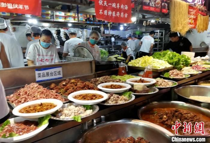 記者走訪徐州市區(qū)大街小巷發(fā)現(xiàn),各大餐館、飯店提前備足了貨源,店方更是拉起橫幅,布置花籃,紛紛推出特色伏羊菜品迎賓納客。11日中午,徐州七百歲羊肉館濱湖店店長(zhǎng)張輝介紹,飯店在伏羊節(jié)期間預(yù)計(jì)每天要用掉大概15只羊的鮮羊肉。店內(nèi)包間、大廳空桌早在一周前就被預(yù)訂滿。當(dāng)天一早,附近很多市民就帶著鍋碗來(lái)店里打羊肉湯。中午,由于吃伏羊的客人較多,一樓大廳的餐位已經(jīng)翻臺(tái)多次。“伏羊節(jié)第一天,單獨(dú)他們這一個(gè)店面最少接待顧客50桌近600人次。
