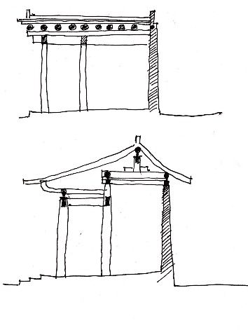 土坯墻建筑的建筑結(jié)構(gòu)主要是土坯墻和木制的柱子承重,還有一種是土坯墻和抬梁架一起承重,最后一種是土坯墻承重。土坯墻受限于自身的材料和工藝問題,所以建筑進(jìn)深一般情況下較小。