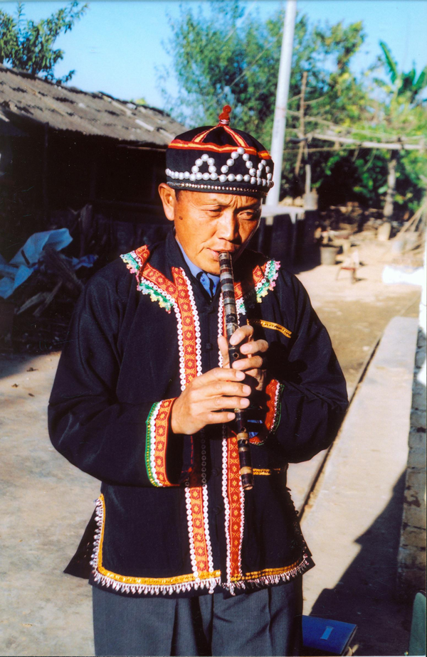 2.樂器。拉祜族的樂器多種多樣,大部分是自己動手制作的。在瀾滄江以西的拉祜族(多數(shù)系拉祜納),喜愛的樂器是:葫蘆笙、蘆笛、哩嘎嘟、響蔑、稻谷桿笛、三弦、必嚕。鎮(zhèn)沅縣的拉祜族(主要是拉祜西),其流行的樂器有三弦琴、嗩吶、五管葫蘆笙、五眼竹笛、響蔑,還有芒鑼、桶鼓。景谷一帶的拉祜族(拉祜西)所常用的樂器有小號、大號、三弦、蘆笙、竹簫、二胡等。