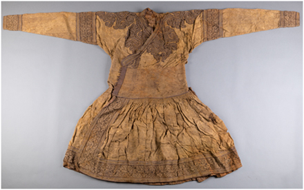 1978年出土于內(nèi)蒙古包頭達(dá)茂旗明水墓的蒙元辮線袍 內(nèi)蒙古博物院館藏一級文物