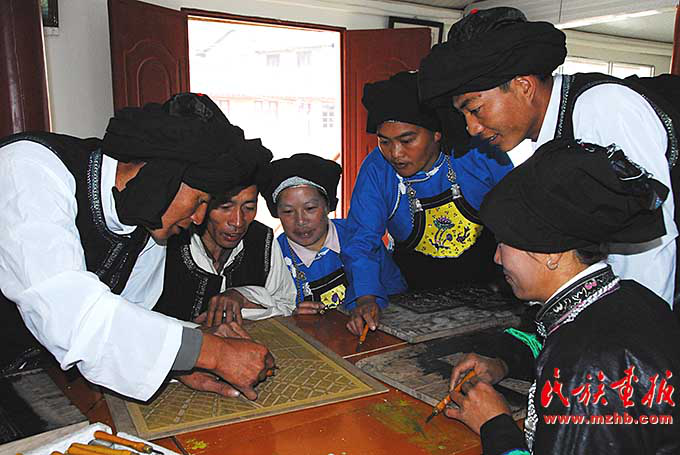 以前很長(zhǎng)一段時(shí)間,沒(méi)幾個(gè)人留意過(guò)阿峨新寨村的繡花技藝。然而,有一次,縣里組織文化館的專家到峨新寨采風(fēng),老師們發(fā)現(xiàn)村民們的這門技藝后非常高興,于是,就發(fā)動(dòng)村民在阿峨新寨村搞起了版畫,這使阿峨農(nóng)民版畫逐漸發(fā)展壯大。1966年,村里的群眾投工投勞蓋起了一幢一樓一底土木結(jié)構(gòu)的文化活動(dòng)室,組織文藝演出、開展繪畫活動(dòng)、圖書閱覽、電影放映、籃球比賽等活動(dòng)。以前,村民們有事沒(méi)事就聚在一起打牌、喝酒、猜拳,精神文化生活比較單調(diào),就連圖書室里的報(bào)刊、圖書也成了擺設(shè),無(wú)人光顧。 但自從村里搞起版畫事業(yè)后,阿峨新寨村的面貌發(fā)生了翻天覆地的變化。“現(xiàn)在的阿峨新寨,處處都是新氣象,版畫成為整個(gè)寨子的一項(xiàng)重要經(jīng)濟(jì)來(lái)源,人均純收入已翻了一番,村民的日子也越過(guò)越紅火?!卑⒍胄抡妩h支書龍子定說(shuō)?!艾F(xiàn)如今我們徹底甩掉了貧困村的帽子?!?盧正林滿臉笑容地說(shuō):“我們版畫村能有今天的成就,離不開好政策?!?/p>