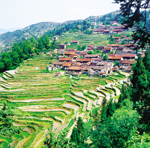 畬族主要聚居在浙江省和福建省山區(qū)的丘陵、山谷盆地。浙江景寧是我國唯一的畬族自治縣。畬族聚居的村寨都在離縣城不遠的大山里,大都選擇避風(fēng)向陽、有水源的地方建房成村。在村寨四周栽種松樹、楓樹、榅樹、苦櫧,房前屋后種毛竹、果樹。村口有樹能擋風(fēng),屋后種樹能蓄水,空氣也格外新鮮,因此,便有了“造成風(fēng)水畫成龍”的畬族諺語。