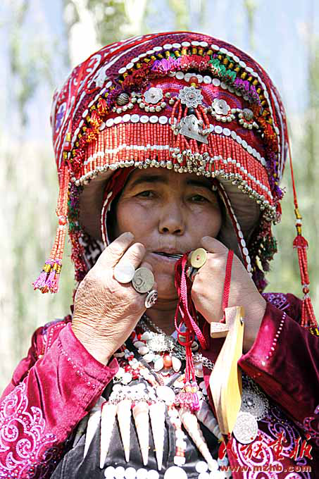 “奧孜庫姆孜”是同時(shí)用嘴吹和用手指彈奏的樂器,琴上只有一個(gè)小小的鋼片用來彈奏。這種樂器只有柳葉大小。演奏時(shí),琴頭放入嘴里,抵于門齒之間,用食指彈奏鋼片,并同時(shí)在口腔內(nèi)呼吸運(yùn)氣進(jìn)行吹奏。在彈奏和呼吸之間奏出婉轉(zhuǎn)美妙的樂曲,因此被稱為柯爾克孜族的“美妙之口”。