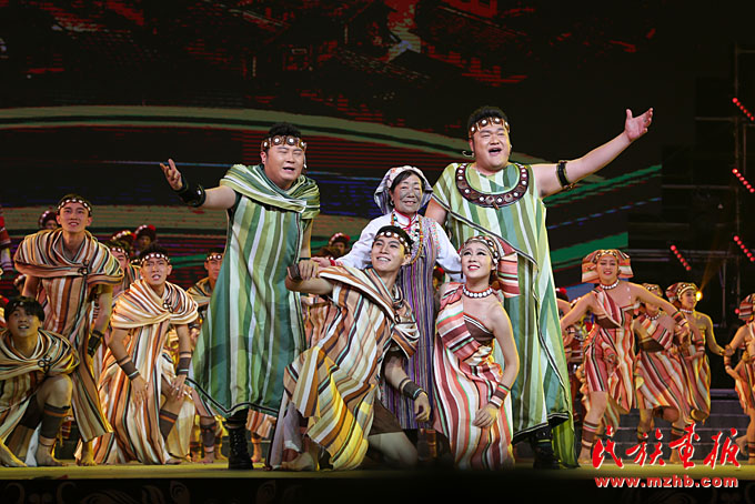 2016年第五屆全國少數(shù)民族文藝會演開幕式上,獨龍族歌舞《邊疆和北京在一起》藝術(shù)地表達了獨龍族人的喜悅,引發(fā)了觀眾強烈的共鳴(陳濤 攝影)