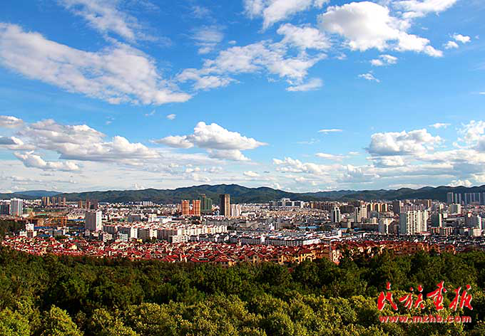 藍天白云下美麗的楚雄彝族自治州楚雄市區(qū)