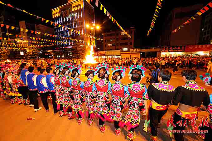 火把節(jié)是彝族傳統(tǒng)節(jié)日中最普遍、最隆重、最富有民族特色的節(jié)日,一般在農(nóng)歷六月二十四至二十六舉行,楚雄彝族火把節(jié)于2006年5月經(jīng)國(guó)務(wù)院批準(zhǔn)為第一批國(guó)家級(jí)非物質(zhì)文化遺產(chǎn)保護(hù)項(xiàng)目。節(jié)日內(nèi)容集民俗活動(dòng)、經(jīng)貿(mào)活動(dòng)、文體活動(dòng)和社交活動(dòng)于一體,像磁石一樣吸引著各族群眾,許多人就是通過(guò)參加火把節(jié)認(rèn)識(shí)了彝族,知道了楚雄彝族自治州的。節(jié)日期間,各族人民載歌載舞,?;鸢选⒎叛婊?,火把節(jié)成了弘揚(yáng)彝族文化、促進(jìn)對(duì)外交流、開(kāi)展經(jīng)貿(mào)活動(dòng)和各族人民大團(tuán)結(jié)的盛會(huì)。
