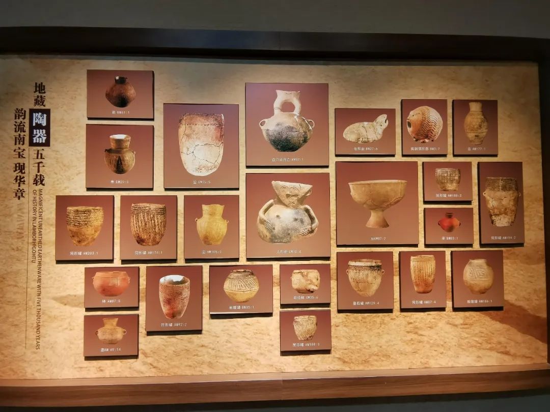 陶韻風(fēng)采;生活穩(wěn)定的南寶先民,在生產(chǎn)之余,加快了對(duì)藝術(shù)追求的步伐,接受來自周鄰?fù)谖幕挠绊懀麄冮_始在日常使用的陶器上面描繪圖案,形成了獨(dú)特的南寶風(fēng)格。雍容華貴的彩陶?qǐng)D案,紋樣繁復(fù)的劃刻特點(diǎn),宛如一面面飄揚(yáng)在這里的旗幟,引領(lǐng)著南寶先民走出原始泥沼,迎接文明曙光。