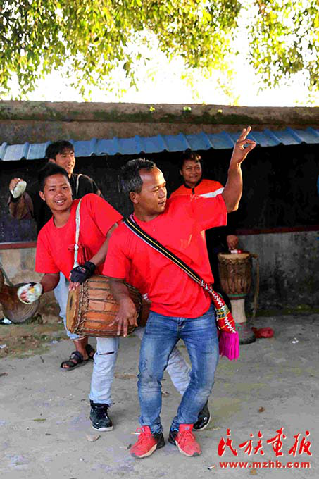 沿著曲折的山路開車一個(gè)多小時(shí),記者來到西盟縣秧洛村一組,恰巧碰到了一對(duì)新人喜結(jié)良緣。清脆的木鼓聲在大山里回蕩,秧洛村的村民喝喜酒、跳木鼓舞。