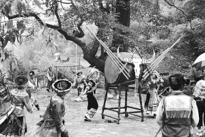 幾百年后,時代的鏡頭奇跡般地聚焦在這個邊遠山村,古色古香的寨子依舊,古樸渾厚的民族風情依然。如今,灣子苗族在固守的土地上世世代代繁衍生息,過著與世無爭、日出而作日落而息的農(nóng)耕生活。守著大山,喝著清泉,數(shù)著星星,陪伴月亮與太陽相行至今,他們堅守原始的本民族傳統(tǒng),在一方古老、清幽的山寨間,打造和守護著自己精心繪制的“伊甸園”。
