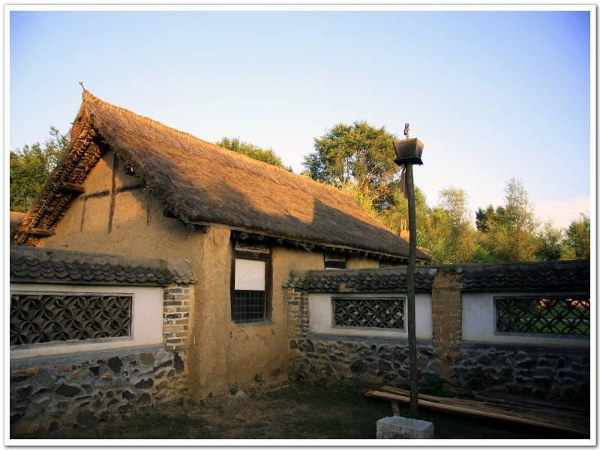 傳統(tǒng)的滿族民居的屋頂一般采用草屋頂或瓦屋頂。屋頂蓋草俗稱“苫房”,在北方農村,這是一種很高超的手藝。通常要在木結構的構架頂部,先鋪上用秫秸桿(高粱桿)或者樹條子編扎的“房芭”,再抹泥填補縫隙。在其上面,將草的根部朝下,層層覆蓋,為防止滑落和被風吹散,還需要用草繩依次交叉加固。草房頂鋪設齊整,久經風雨,草就變成了黑褐色,因此也叫“海青房”。
