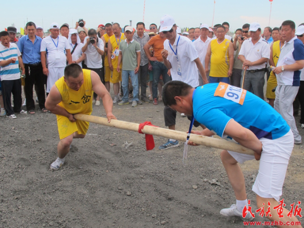 頂杠是赫哲族傳統(tǒng)體育項目,節(jié)日活動期間舉行了頂杠比賽