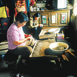 街津口村的赫哲族人在準(zhǔn)備捕魚的網(wǎng)