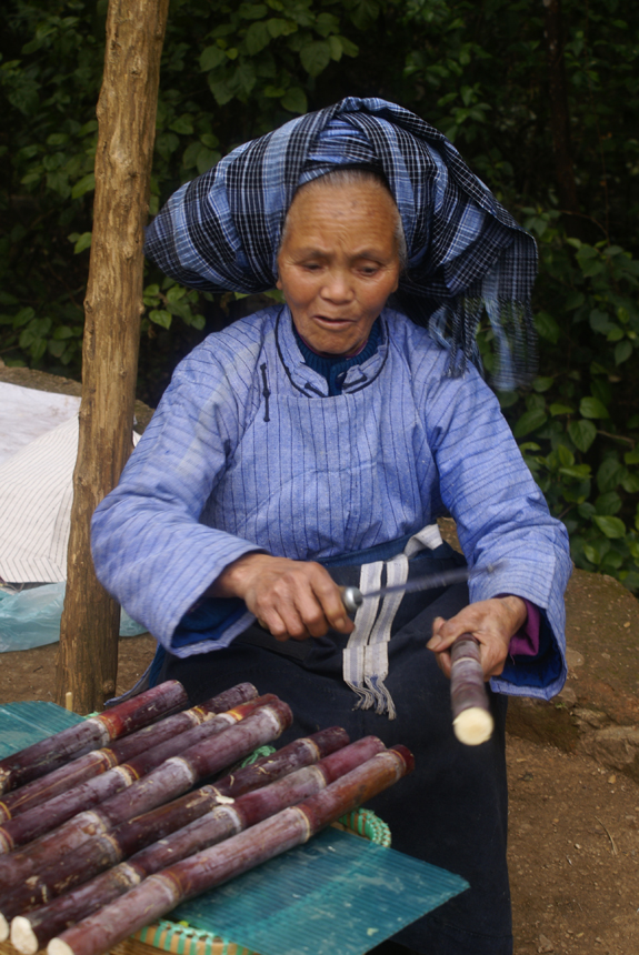孝敬父母,尊敬老人在布依族人看來是天經地義的事,民間有“天上雷公大,天下父母大”“飲酒先敬父,吃肉先敬兄”“山大長雜草,人大養(yǎng)父母”等諺語。布依族在尊老方面,有具體的言行規(guī)范和細則,違之則會受到社會的譴責。家里再窮也要盡心贍養(yǎng)老人,不得怠慢。與老年人或長輩同行,必須讓他們走在前面;同行時有10歲以下的小孩兒,也要讓其走在前面。路上見老年人或長輩挑東西,若是順路必須為他們挑一段路程,甚至送到家。生活上,吃飯時要先請老人,席間,晚輩要主動為長輩盛飯、拈菜,雞頭、雞肝、雞心一定要敬給老人吃?;ㄏ?zhèn)山村布依族就餐時,由老人先將桌上的每一道菜都動過一輪后,小輩才能吃(圖為賣甘蔗的布依族老人,劉軍供圖)。