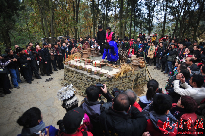 高排苗寨牯藏節(jié)。莊嚴(yán)神秘的祭堂具有聚攏族人的強(qiáng)大磁力。引自民族畫報(bào)