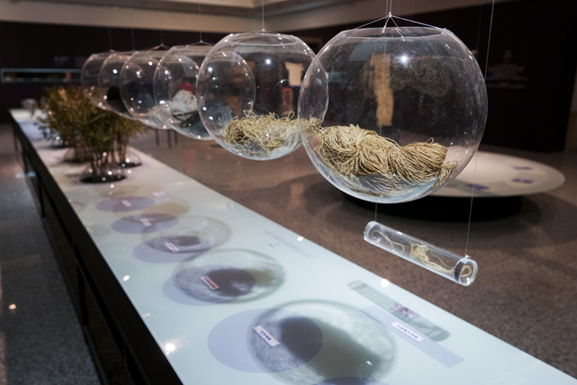 展覽還用特別的篇幅呈現(xiàn)了民族服飾對天然材質(zhì)的取用。天然,這種被視為極致的現(xiàn)代奢華,只不過是傳統(tǒng)社會中人類曾經(jīng)習(xí)以為常的日常生活狀態(tài)。那些在當(dāng)代被念念不忘、不斷回歸的傳統(tǒng)工藝表明,傳統(tǒng)依然活著,并且具有強大的生命力。