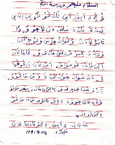“小經(jīng)”作為一種拼寫文字形成之后,在經(jīng)堂中曾出現(xiàn)過(guò)“阿文小經(jīng)文字對(duì)照表”,不僅經(jīng)堂學(xué)員用“小經(jīng)”來(lái)注釋經(jīng)文或作筆記,一些阿訇也以之翻譯某些經(jīng)文或進(jìn)行著述。在部分回族穆斯林中,它也曾被用作寫書信、記日記或記事的應(yīng)用文字。因有些漢語(yǔ)語(yǔ)詞極難拼準(zhǔn),故行文中常夾雜一些阿拉伯文或波斯文的原詞,也有夾雜個(gè)別漢字。