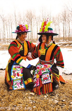 隨著時代的更替,土族女性的服飾發(fā)生了很大變化,有的傳統(tǒng)服飾已消失,有的服飾經(jīng)過推陳出新,重放光彩。如舊時的繡花高領(lǐng),如今變成直翻兩用領(lǐng);蓋在“扭達”上的長頭巾——“扭達爾秀巾”,變成了今日土族女性使用的短頭巾。現(xiàn)今,廣大土族女性,不僅喜穿本民族服飾,而且還愛著時尚服飾,她們或使土族服飾時裝化,或使時裝土族服飾化,豐富了土族的服飾文化。
