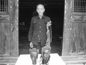符長(zhǎng)洪展示侗族傳統(tǒng)道具。