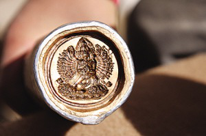 我在曼谷一家有40年歷史的佛像店“佛光工藝社”采訪時問到老專家這樣一個問題:泰國現(xiàn)在大概有多少種圖案的帕肯?所有聽到這個問題的人都是一聲驚嘆,然后笑說:“無數(shù)!”我非要問出個數(shù)來,他們便告訴我,泰國是一個歷史劃分復(fù)雜、族源廣博的國家,因此其包容性很強(qiáng),雖然九成以上的人信仰佛教,但是婆羅門教、道教、伊斯蘭教、基督教等在泰國都被接納,還有本土的一些法術(shù)也不曾被丟棄。所以,每天每個來定做的人都會有不同材質(zhì)的要求,不同圖像、符咒的組合,僅一個工藝社40年來就已經(jīng)做過幾十萬種的圖案組合。我收藏的擦擦有不同年代、不同材質(zhì)、不同價值的,除去年代久遠(yuǎn)的,頗有價值的就是一個藥擦,那是一個大威德金剛擦,專家說從被剝落的剖面看,里面有藥材的成分。我知道,在西藏,擦擦因材質(zhì)和制作人不同而有很大的區(qū)別。擦擦中最為稀有難求的一種叫“布擦”,那是寺廟僧人在保存活佛法體的時候,將那些浸透活佛法身血水的鹽巴或其它藥物和泥土融合后制成的。另一種較為珍貴的擦擦是活佛的骨灰與泥土摻混在一起制作而成的。還有一種藥物擦擦,是用不同的名貴藥材如珍珠、瑪瑙、藏紅花等藏藥合成制作,可服用治病。最普通的擦擦用一般的泥土制作,好一點的有膠泥、陶土、白泥等,這種擦擦成本低廉,在民間流傳最廣。