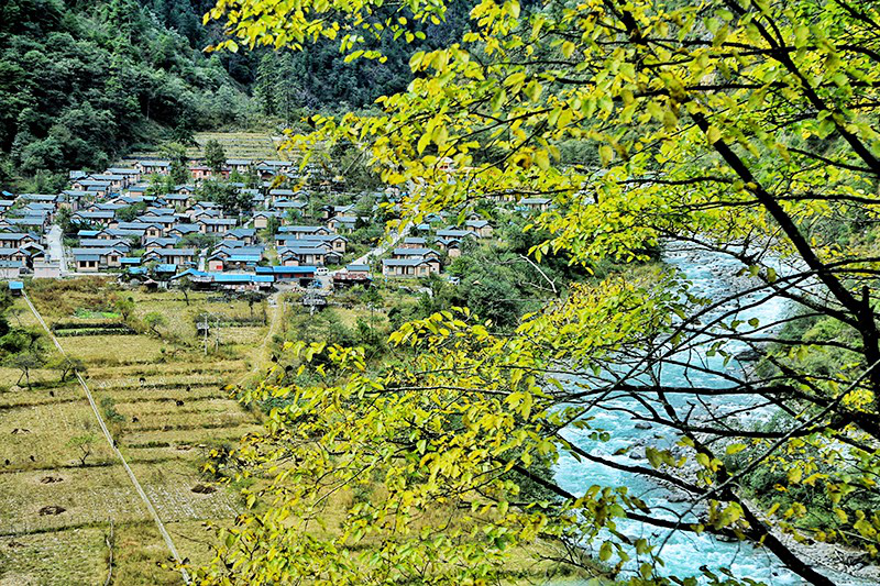 熊當村遠眺。熊當村是獨龍江鄉(xiāng)最北的村子,與西藏接壤,如今已完成了安居重建
