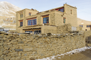 受地理氣候、歷史因素等影響,青海各傳統(tǒng)村落的人口密度、村域面積和村民從事的主業(yè)等各不相同。同一地區(qū)各村落之間雖然地貌特征大致相同,但因局部的植被條件存在差異,所以民居建筑的內(nèi)部結(jié)構(gòu)及木材用量上稍有差異。東部農(nóng)業(yè)區(qū)人口密度相對(duì)較大,一個(gè)自然村分建為兩到三個(gè)行政村。這些村落通常有著共同的祖先、共同的風(fēng)俗習(xí)慣以及共同祭祀的山神和共同供奉的寺廟。而青南地區(qū)的一個(gè)行政村下轄5至7個(gè)自然村,轄區(qū)面積約300至500平方公里,有兩三座寺院。山水地貌、拉則(神山祭祀臺(tái))、經(jīng)幡、寺院、佛塔、石經(jīng)墻及錯(cuò)落有致的碉樓民居建筑,構(gòu)成了一個(gè)有機(jī)的整體,是青藏高原傳統(tǒng)村落不可或缺的組成部分。