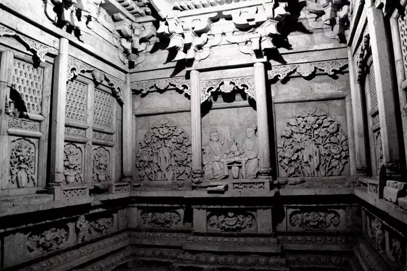 中國磚雕是由東周瓦當、空心磚和漢代畫像磚發(fā)展而來的。漢代畫像磚是墓室預(yù)制構(gòu)件的大型空心磚,它是在濕的泥坯上用印模捺印各種圖像。北宋時形成磚雕,成為墓室壁面的裝飾品。在河南、山西、甘肅等地發(fā)掘的北宋墓室,三面墻壁均以磚雕貼砌而成。墓室內(nèi)的磚雕數(shù)量、質(zhì)量以及所選用的題材,都取決于墓室主人的社會地位。常見的題材有墓室主人夫婦對坐、男仆托盤、侍女執(zhí)壺等,再現(xiàn)了墓室主人生前的生活情景。金代,墓室磚雕的內(nèi)容更加豐富,技藝也有所提高。