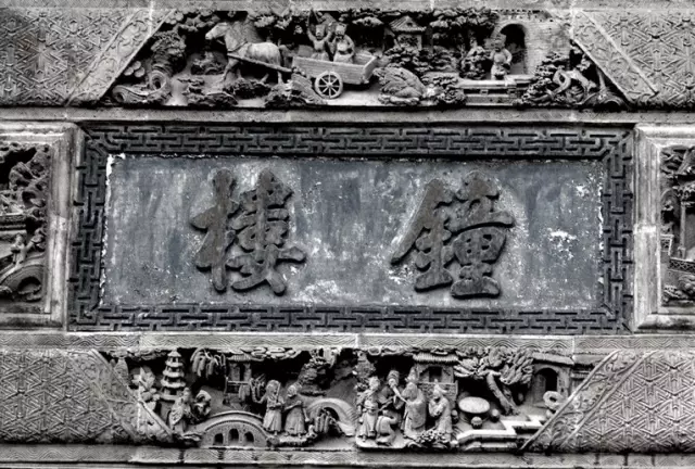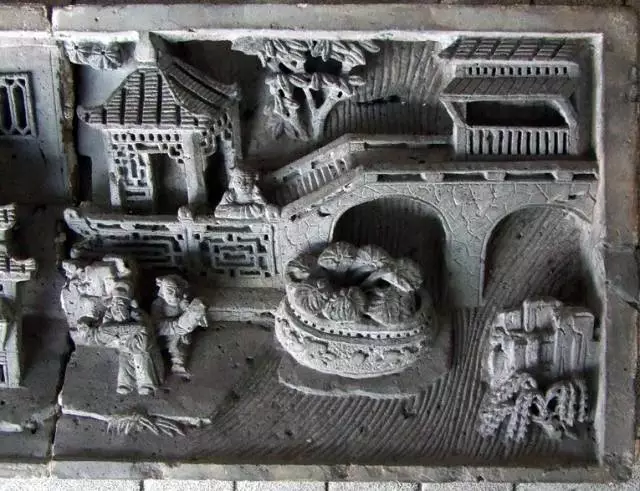 磚雕指在青磚上雕出山水、花卉、人物等圖案,是古建筑雕刻中很重要的一種藝術(shù)形式。
