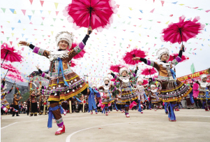 “打同年”是融水縣苗、侗和瑤等少數(shù)民族的文化傳統(tǒng),一般是村與村之間相約在春節(jié)期間進(jìn)行,聯(lián)誼雙方互稱“同年”。整個(gè)活動一般持續(xù)三天,包括進(jìn)寨儀式、蘆笙聯(lián)歡、圍同年儀式、聯(lián)歡晚會、百家宴等。雙方通過吹蘆笙、跳蘆笙舞、對歌等多種傳統(tǒng)方式聯(lián)歡,增進(jìn)交往交流交融。