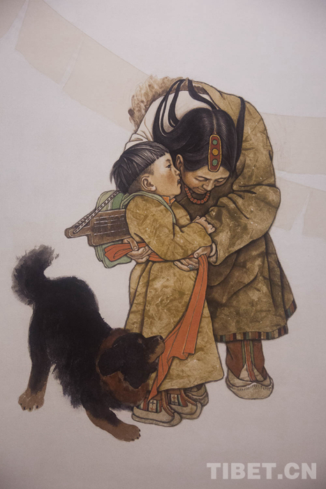 面對眾多畫家的褒揚,韓書力表示自己才是受益者,是藏文化滋養(yǎng)了自己,成就了自己;是西藏人民接納了自己,幫助了自己?!皝砦鞑貛资辏鞑厝嗣窠o與我太多幫助,讓我從對西藏文化一竅不通到現(xiàn)在逐漸了解,并把我理解的西藏文化運用到繪畫之中,才有了今天這些畫作。我所描繪的西藏還太少太少,跟西藏本土的一些民間畫家相比,我還差的太遠(yuǎn),在藏文化之中的浸潤還不夠?,F(xiàn)在我和西藏青年畫家是教學(xué)相長的關(guān)系。我在他們身上得到的東西比我給他們的要多得多,”韓書力直言。