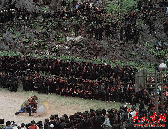 黑衣壯青年男女的戀愛熱情浪漫,一個(gè)個(gè)扔向簸箕的香包和紅帶子,不久就會(huì)連接兩顆年輕的心,引出一段醉心動(dòng)人的愛情故事