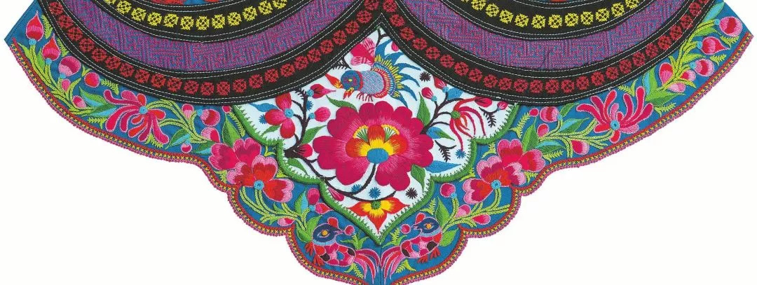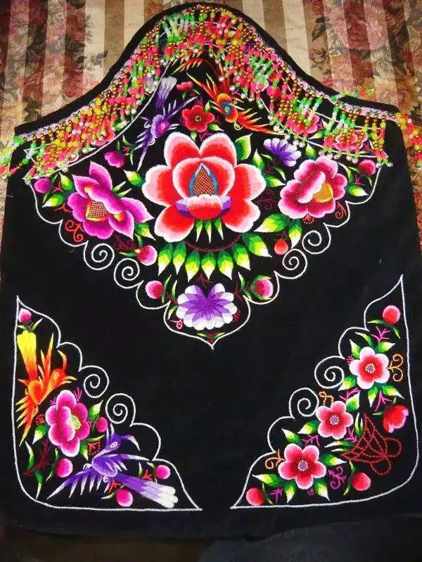 彝族婦女圍腰,是女性審美的結晶,實用美觀。圍腰是最能集中體現彝族女性心靈手巧的女紅作品,因此成為青年男子傳統(tǒng)擇偶的重要標準之一。每條彝族圍腰,須經過剪紙、裁剪、刺繡、挑花、配飾等環(huán)節(jié),每一個細微的過程都傾注了彝女的聰明與才智。事實上,彝族婦女圍腰,還蘊含著重要的彝族社會歷史、文化信息。