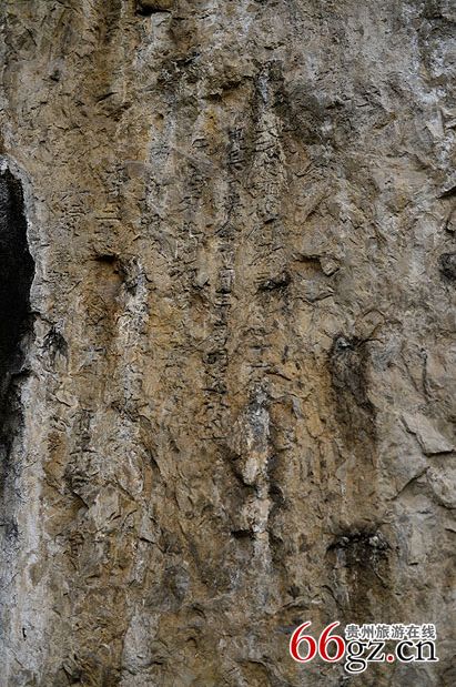 金山洞摩崖是貴陽市花溪區(qū)最早的摩崖石刻,也是貴州最早的摩崖石刻之一。該摩崖石刻位于燕樓鄉(xiāng)東北三里的金山洞巖壁上。其山上豐下儉,古人利用自然山形,在可避風(fēng)雨的洞壁上摩巖、題刻賦詩作畫。整個摩崖面積通高140厘米,寬74厘米;自右至左豎行排列,共6行82字。據(jù)系楷書陰刻,書法古樸流暢,具有較高的歷史價值。