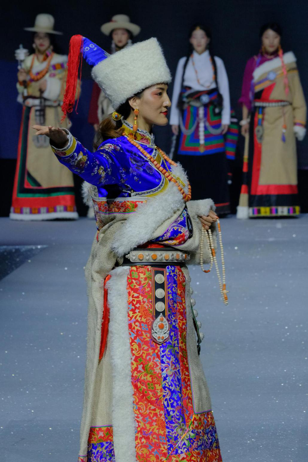 本屆藏模大賽秀臺以“從雪山走下的民族面孔”為設(shè)計理念,通過光影鋪設(shè),秀臺整體呈現(xiàn)“雪域景”、“都市風”兩大場景,現(xiàn)場觀眾不僅能置身寰宇之巔,近距離觸摸藏民族燦爛的服飾文化,同時能夠得以一睹百大藏模時尚高光的驚艷瞬間。