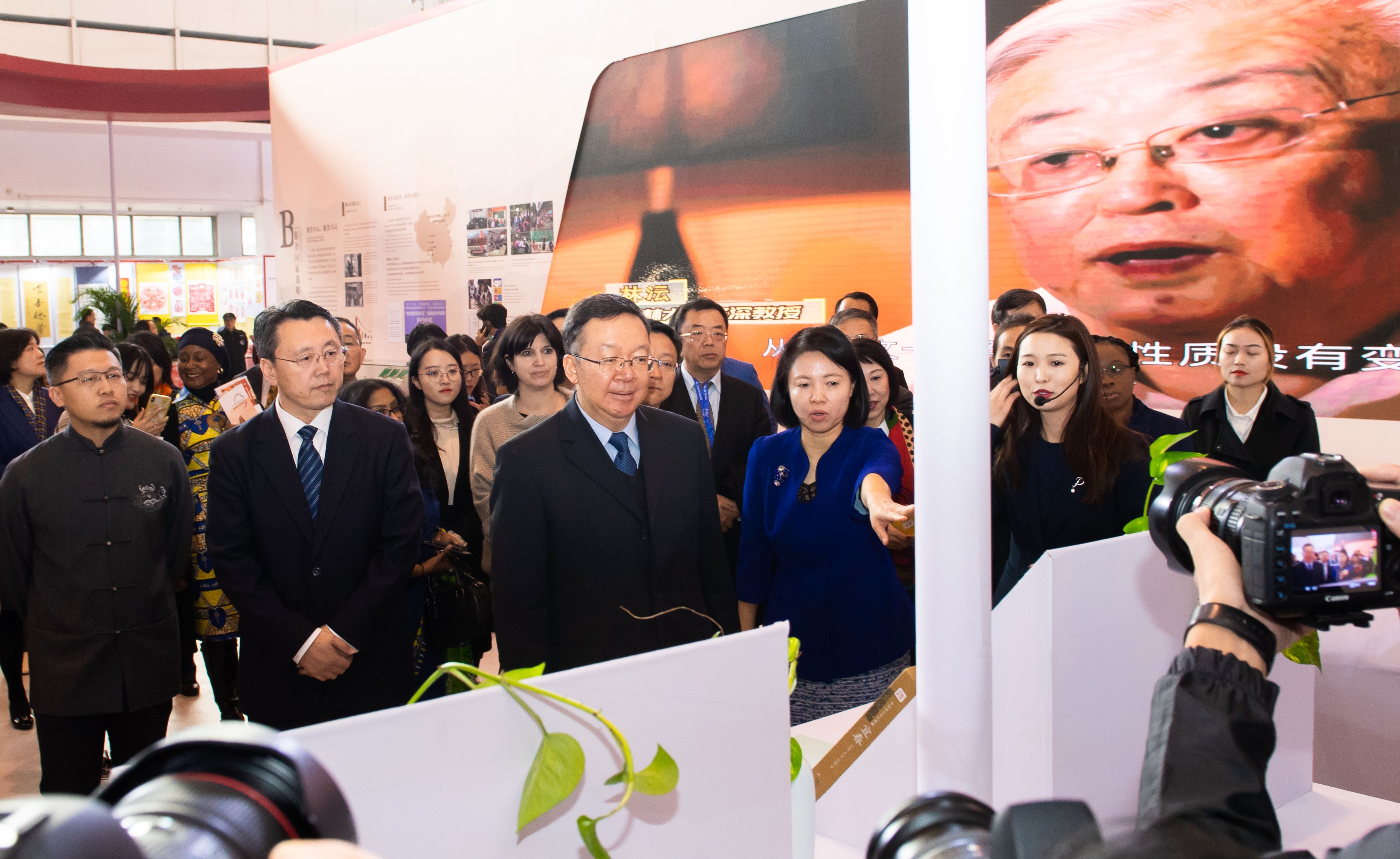10月25日,教育部副部長(zhǎng)、國(guó)家語(yǔ)委主任田學(xué)軍出席第三屆中國(guó)北京國(guó)際語(yǔ)言文化博覽主論壇——“語(yǔ)言智能與語(yǔ)言多樣性”國(guó)際語(yǔ)言文化論壇開(kāi)幕式,并在開(kāi)幕式后赴中國(guó)國(guó)際展覽中心巡展,在現(xiàn)場(chǎng)聽(tīng)取了“新中國(guó)成立七十周年語(yǔ)言文字事業(yè)發(fā)展成就展”介紹,參觀了科大訊飛、京津冀協(xié)同發(fā)展展區(qū)、粵港澳大灣區(qū)展區(qū)、廣西語(yǔ)委展區(qū)以及語(yǔ)言科技、語(yǔ)言出版、語(yǔ)言創(chuàng)意展,在語(yǔ)言藝術(shù)展演區(qū)欣賞到由首都師范大學(xué)外國(guó)留學(xué)生演出的詩(shī)詞吟誦,并在成就展”簽名樹(shù)”上簽名。